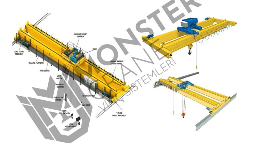 Çift kiriş MONSTER gezer köprülü vinçler, ağır yükleri kaldırmak ve taşımak için kullanılan bir tür vinç tipidir. Bu vinçler, iki paralel kirişle desteklenen bir yol üzerinde hareket edebilen (kedi) bir vinç sistemidir.